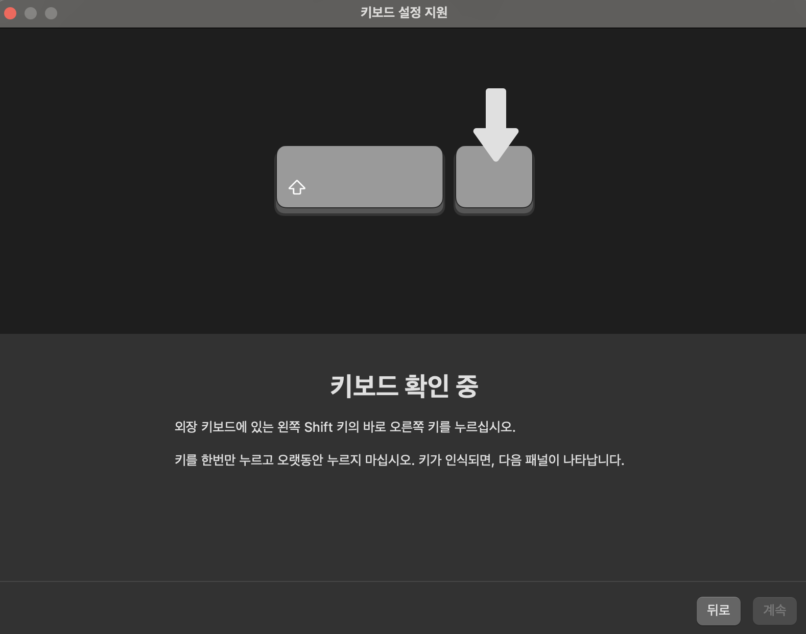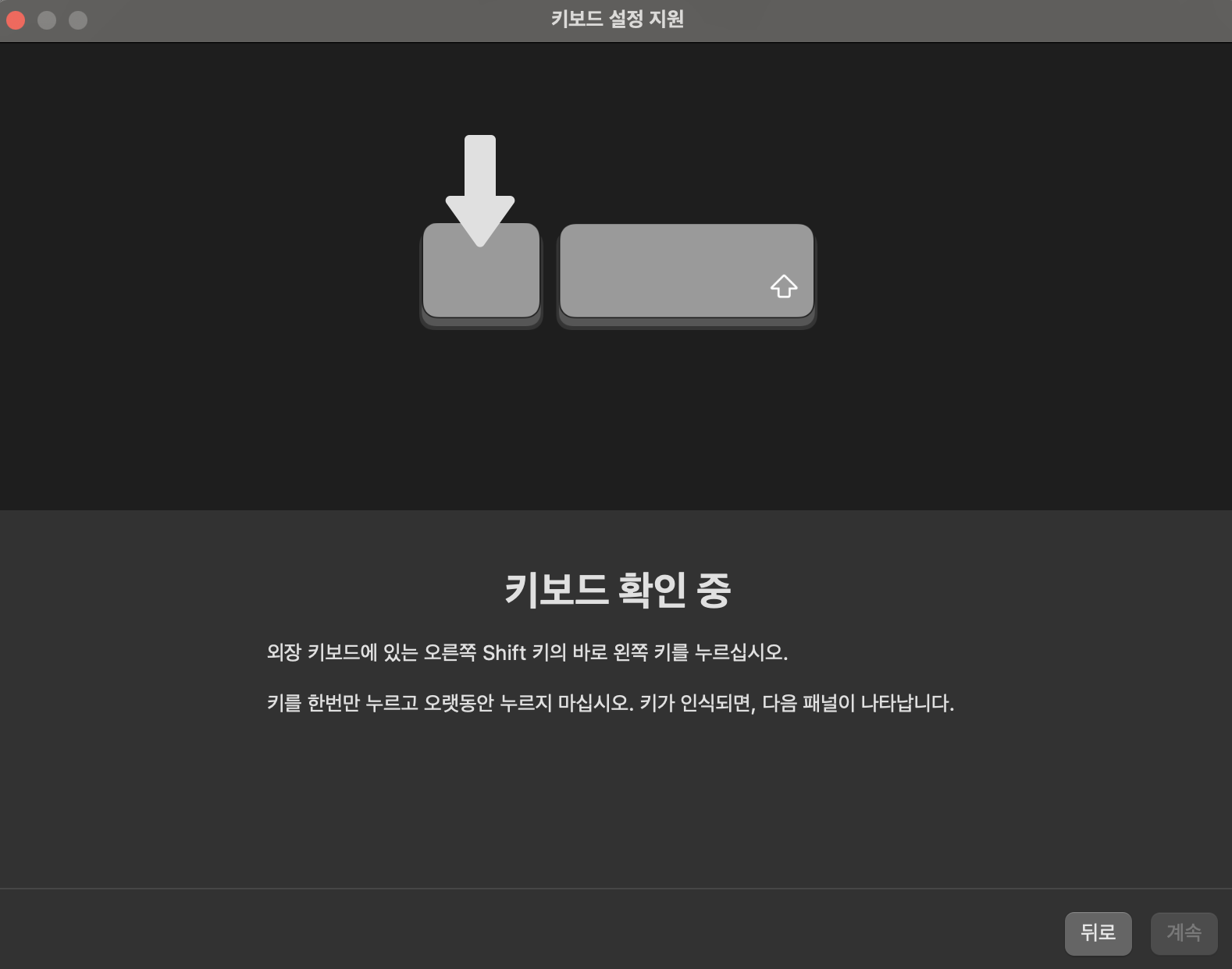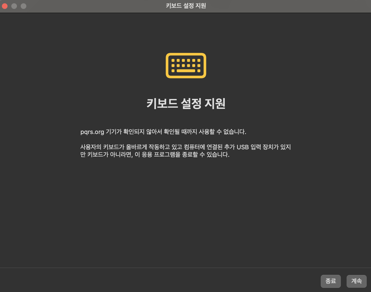 그리고 프로그램을 사용하기 전, 키보드 설정을 위해서 몇 가지 단계가 필요하다. 하라는 대로 하다보면 키보드 설정은 쉽게 할 수 있다. (마지막 단계에서 키보드 유형은 첫 번째 ANSI로 선택해주면 된다.)