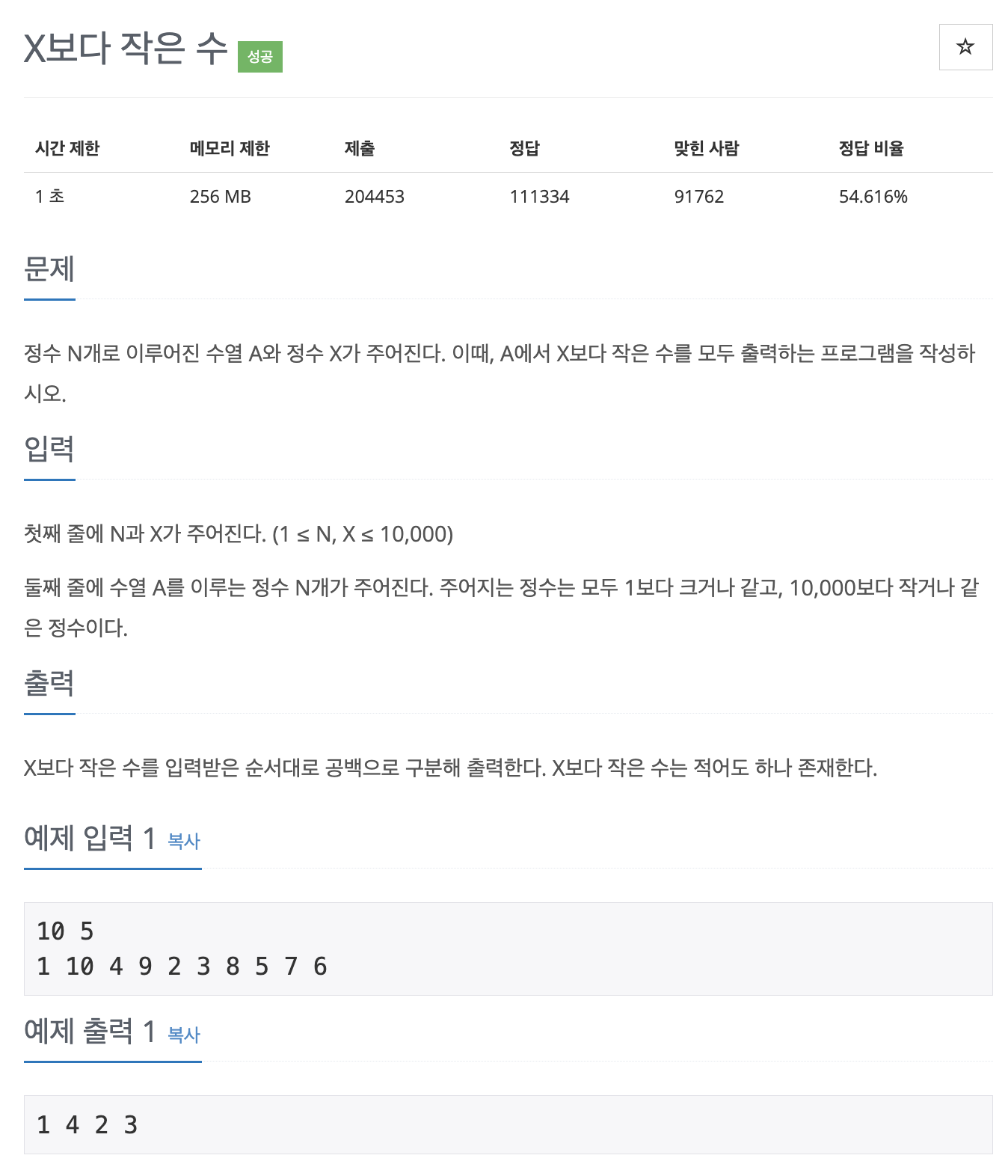 - 반복문을 돌릴 때 A[i]의 값이 X보다 작다면, A[i]의 값을 출력하고, 줄바꿈되지 않고 띄어쓰기로 구분해주기 위해 end=" "를 사용한다.
